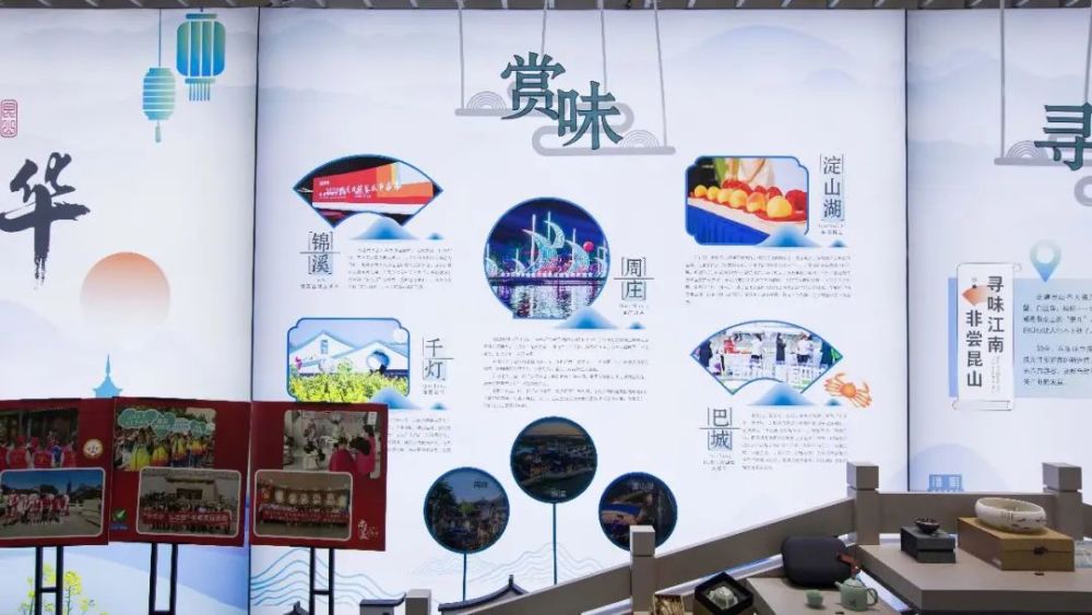 Walking in the Jincheng Hall, the rich and delicious Wansantou and the fresh and refreshing grandma's dishes interpret the beauty of Zhouzhuang's rich and beautiful water town from the perspective of food. What tourists most look forward to is the annual Mid-Autumn Lantern Festival on both sides of the Taiwan Strait (Kunshan). It is reported that the cultural tourism image exhibition is guided by the Publicity Department of the Kunshan Municipal Party Committee and hosted by Kunshan Tourism Resort, Zhouzhuang Town, Jinxi Town, Qiandeng Town, Bacheng Town, and Dianshan Lake Town. The exhibition shows the beauty of the rivers in the south of the Yangtze River among the hundred scenic views of Kunshan.